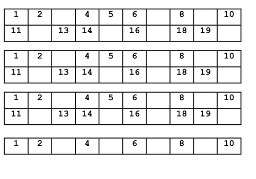 In these counting worksheets, students fill in the missing numbers between 1 and 50.